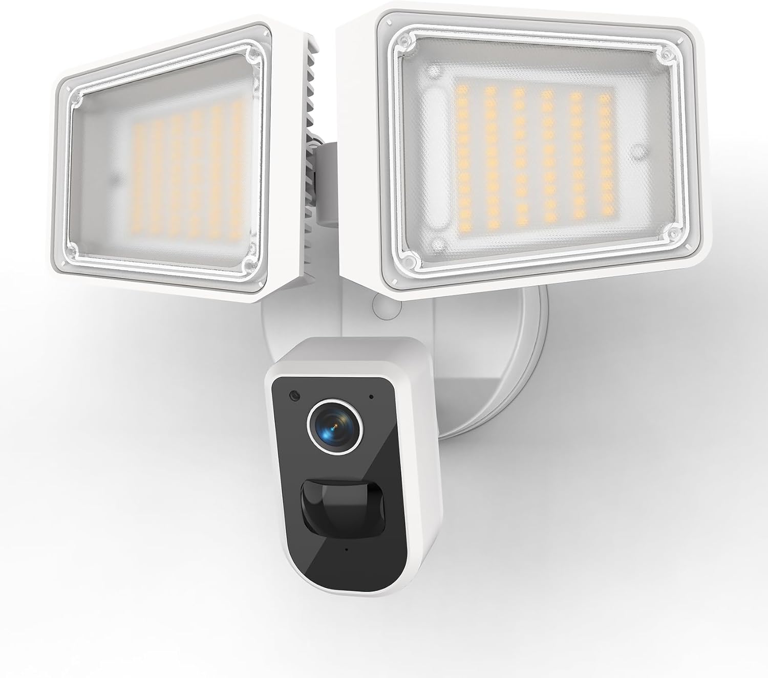 - Dusk-to-Dawn Smart Lighting: The built-in dusk-to-dawn lighting automatically turns the LED flood light on at sunset and off at sunrise. Combined with motion activation, this motion floodlight camera ensures your wireless outdoor security camera is always ready, without manual control.